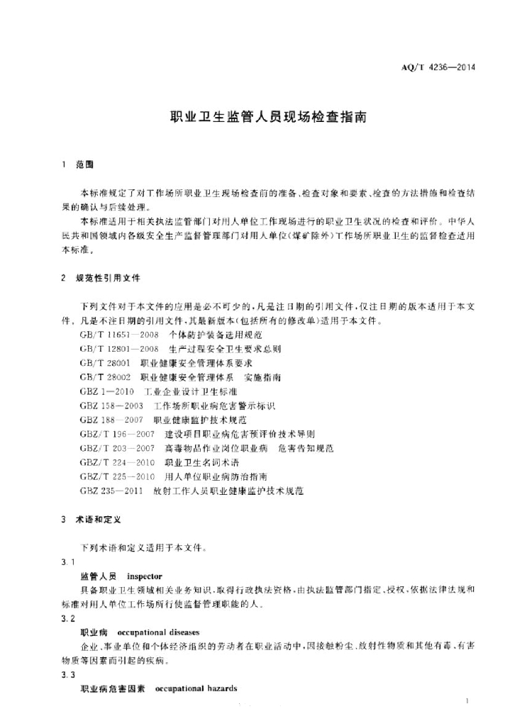 AQ/T 4236-2014 职业卫生监管人员现场检查指南