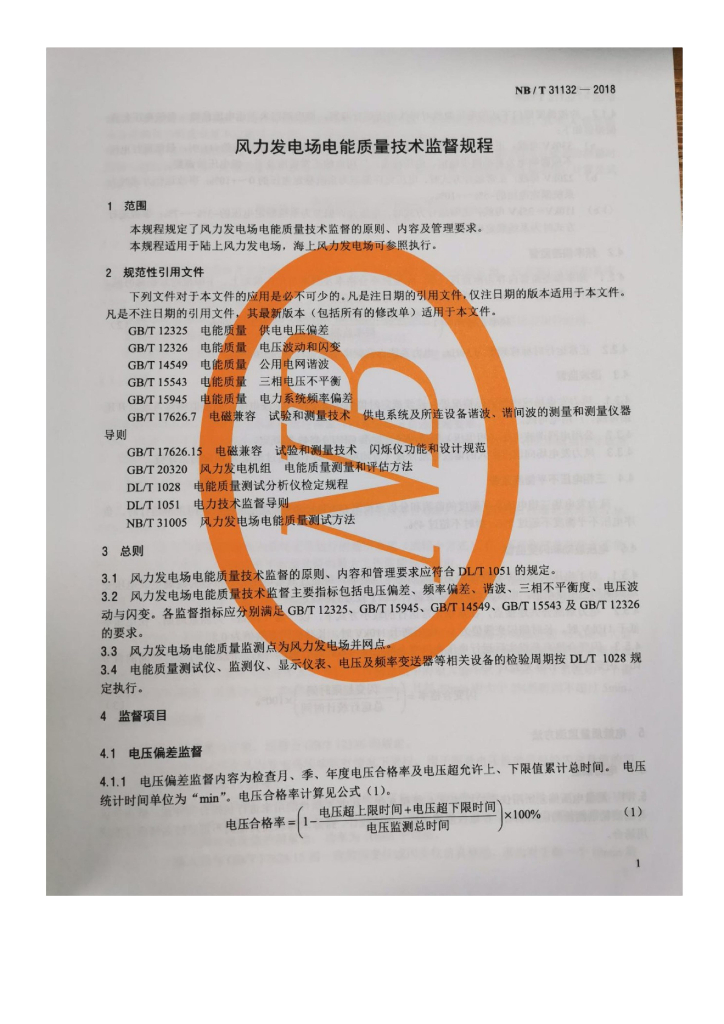NB/T 31132-2018 风力发电厂电能质量技术监督规程
