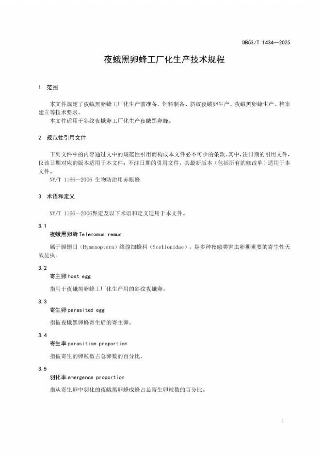 DB53/T 1434-2025 夜蛾黑卵蜂工厂化生产技术规程