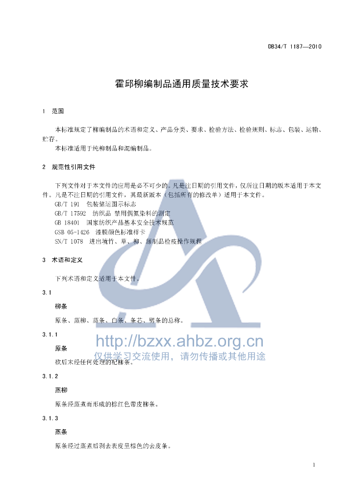 DB34/T 1187-2010 霍邱柳编制品通用质量技术要求