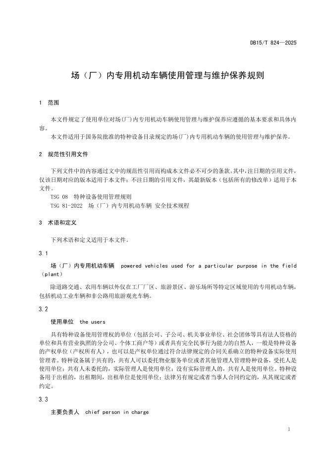 DB15/T 824-2025 场(厂)内专用机动车辆使用管理与维护保养规则