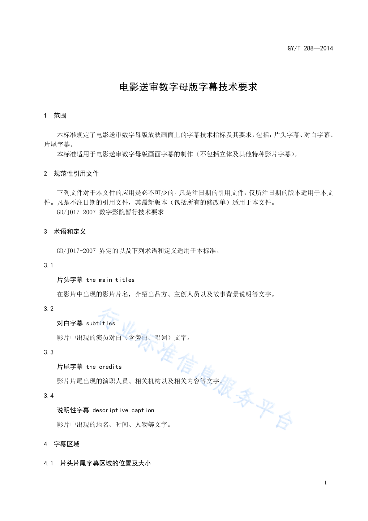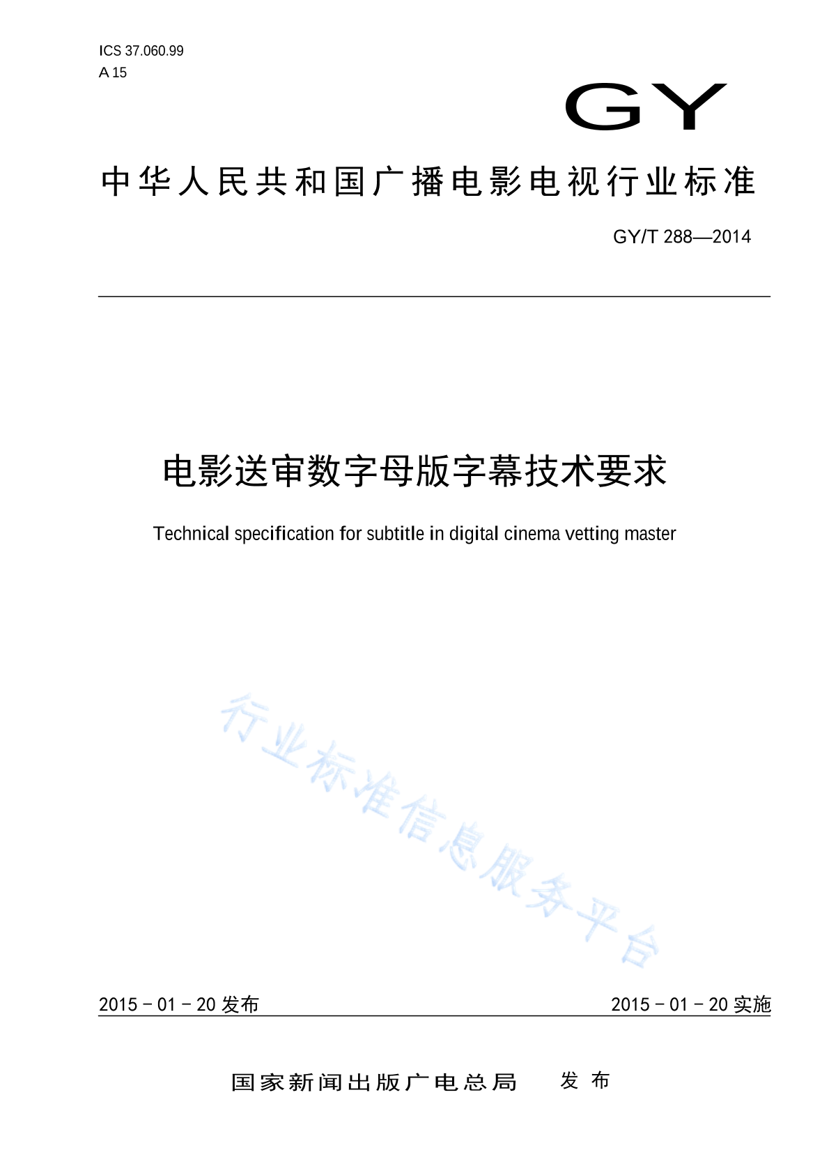 GY/T 288-2014 电影送审数字母版字幕技术要求