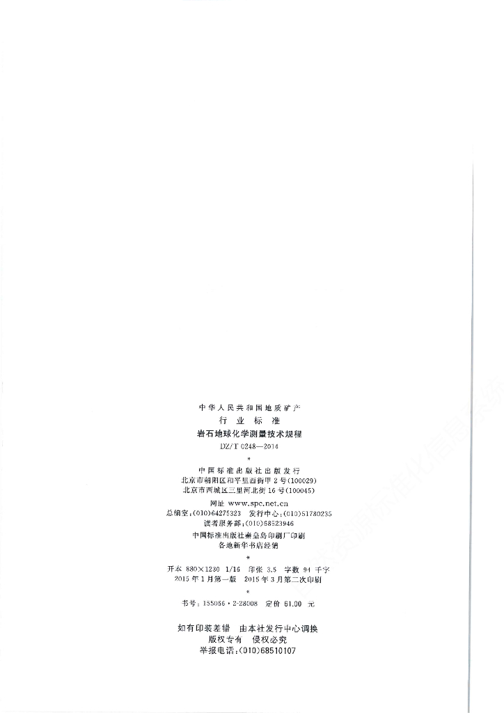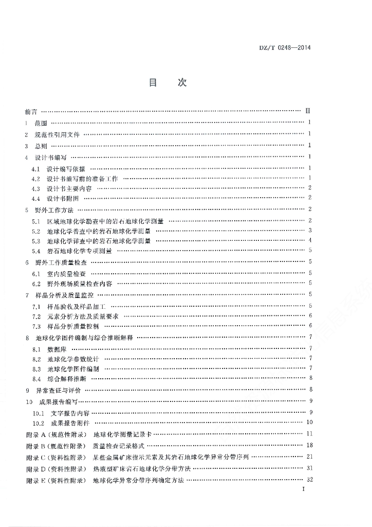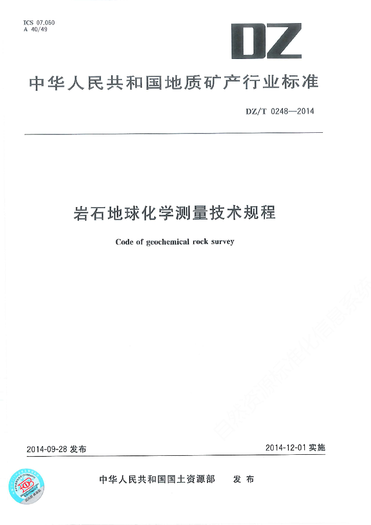 DZ/T 0248-2014 岩石地球化学测量技术规程