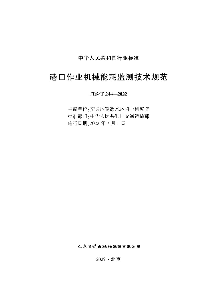 JTS/T 244-2022 港口作业机械能耗监测技术规范