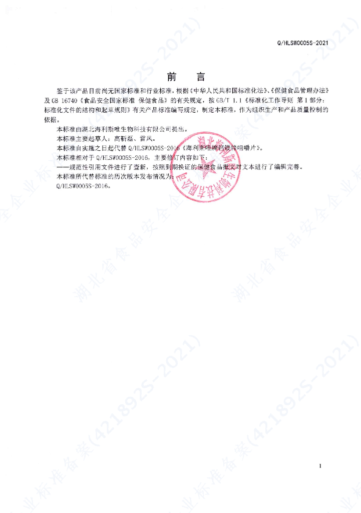 Q/HLSW 0005S-2021 海利斯唯牌钙镁锌咀嚼片