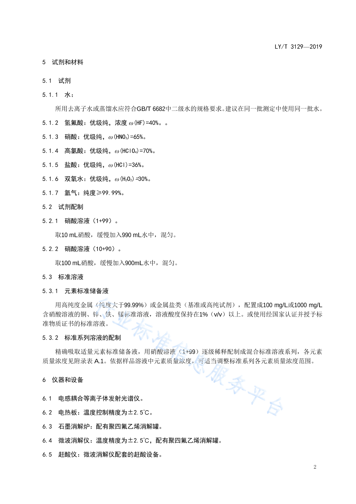LY/T 3129-2019 森林土壤铜、锌、铁、锰全量的测定电感耦合等离子体发射光谱法