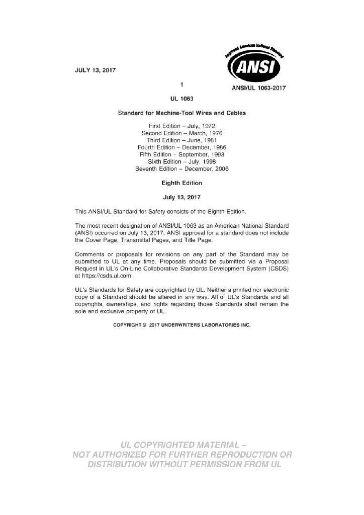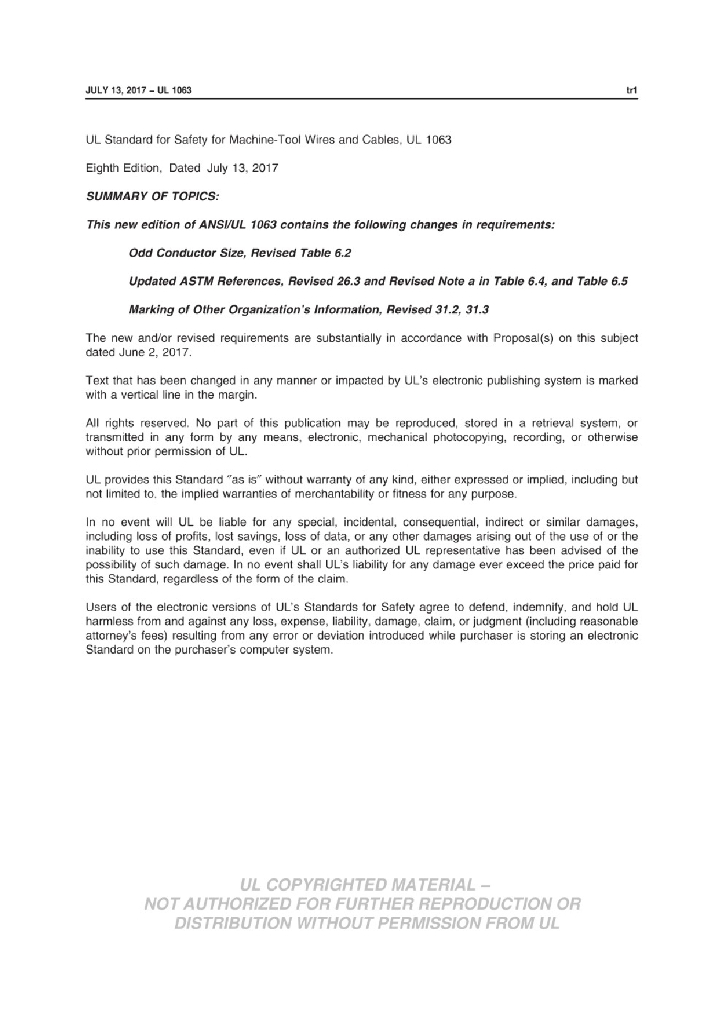 UL 1063-2017 机床用电线电缆