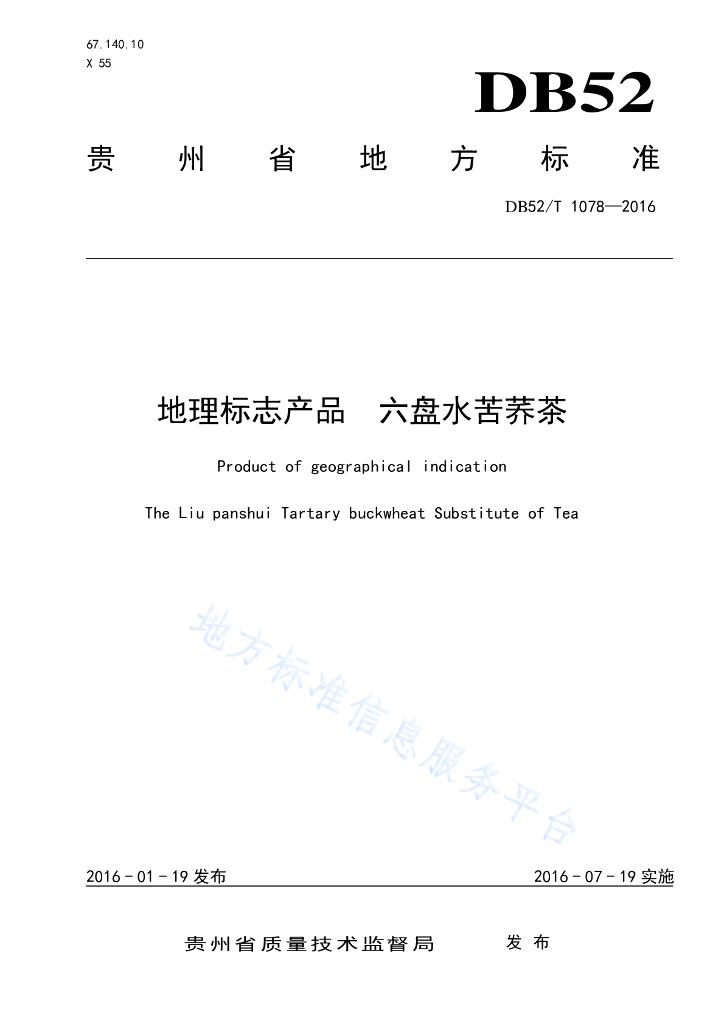 DB52/T 1078-2016 地理标志产品 六盘水苦荞茶