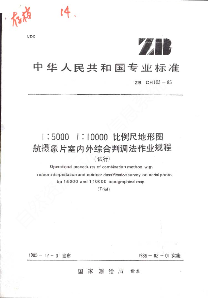 CH/T 3001-1999 1:5 000 1:10 000比例尺地形图航摄像片室内外综合判调法作业规程(试行)