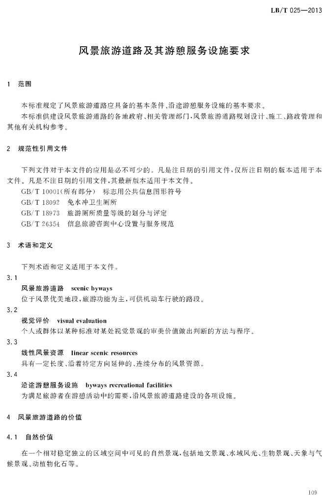 LB/T 025-2013 风景旅游道路__及其游憩服务设施要求