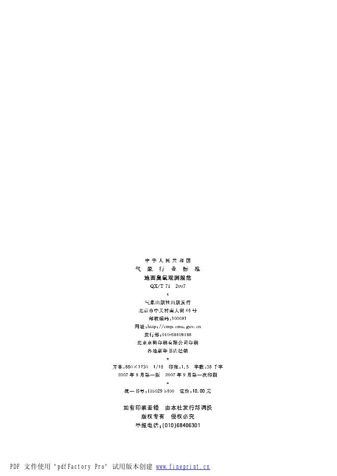 QX/T 71-2007 地面臭氧观测规范