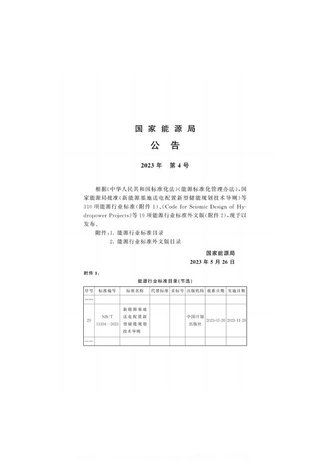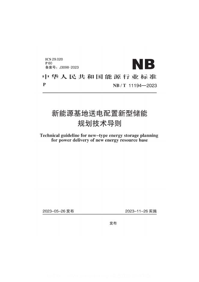 NB/T 11194-2023 新能源基地送电配置新型储能规划技术导则(附条文说明)