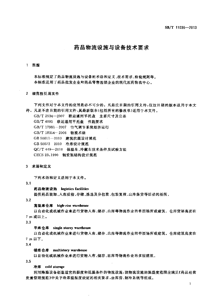 SB/T 11036-2013 药品物流设施与设备技术要求