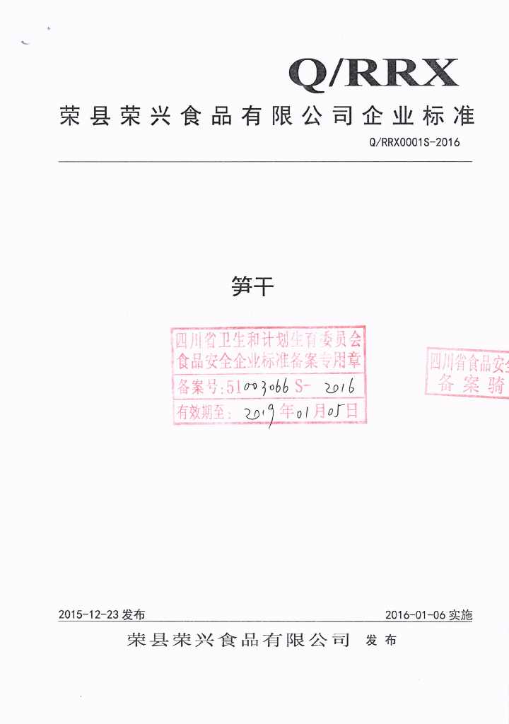 Q/RRX 0001S-2016 荣县荣兴食品有限公司 笋干
