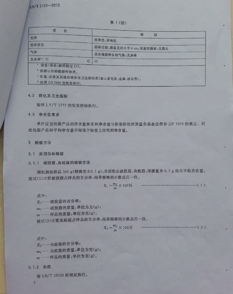 LY/T 2133-2013 森林食品 榛蘑干制品