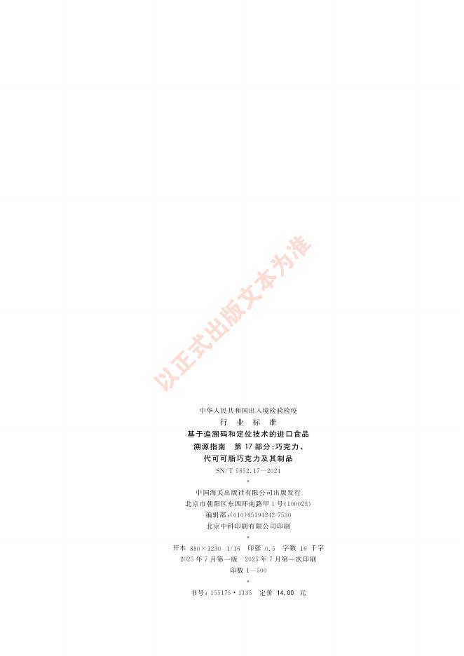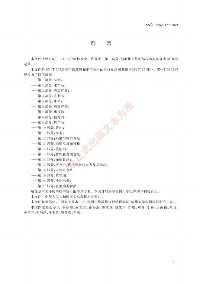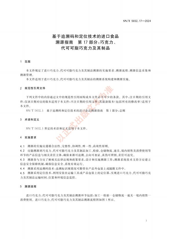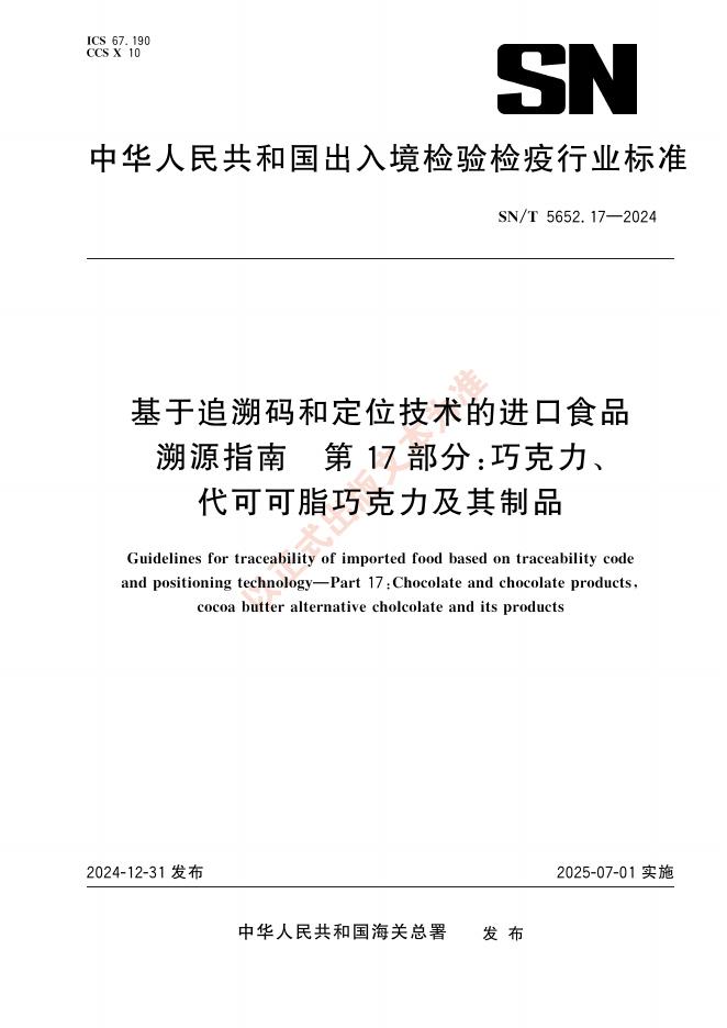 SN/T 5652.17-2024 基于追溯码和定位技术的进口食品溯源指南 第17部分:巧克力、代可可脂巧克力及其制品