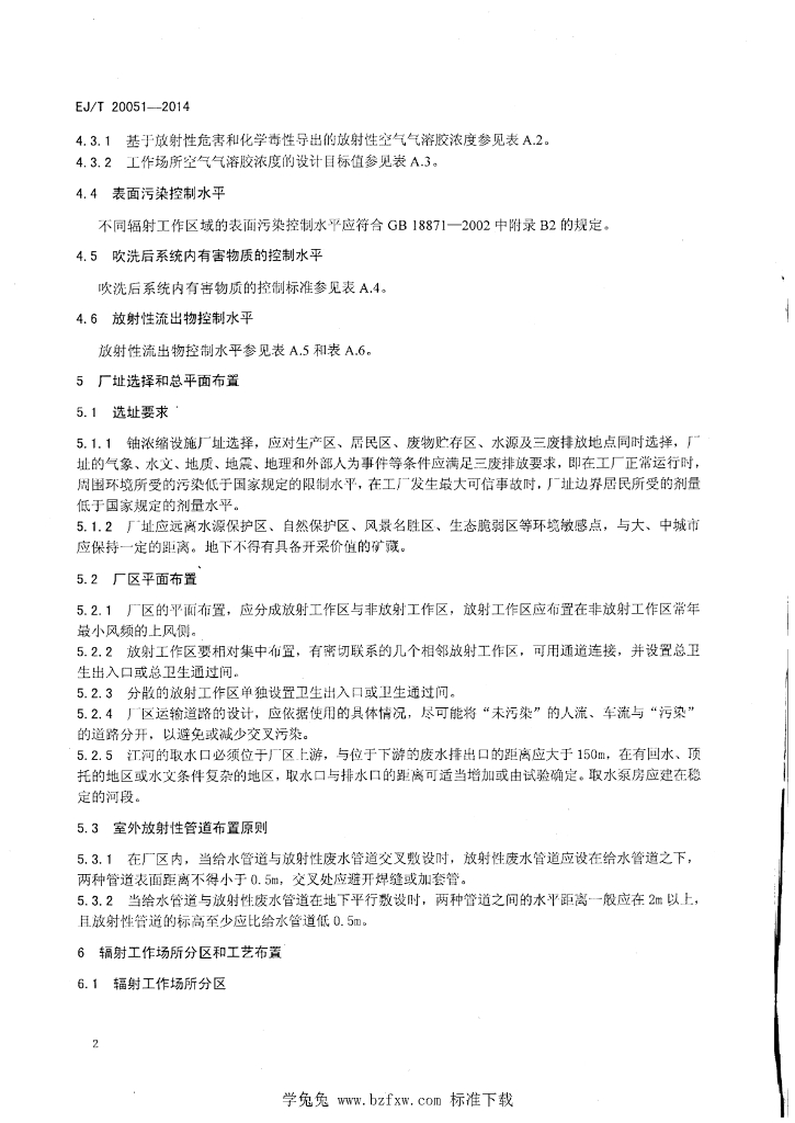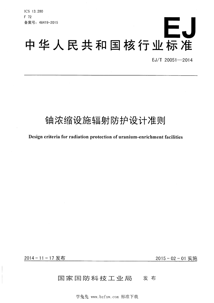 EJ/T 20051-2014 铀浓缩设施辐射防护设计准则