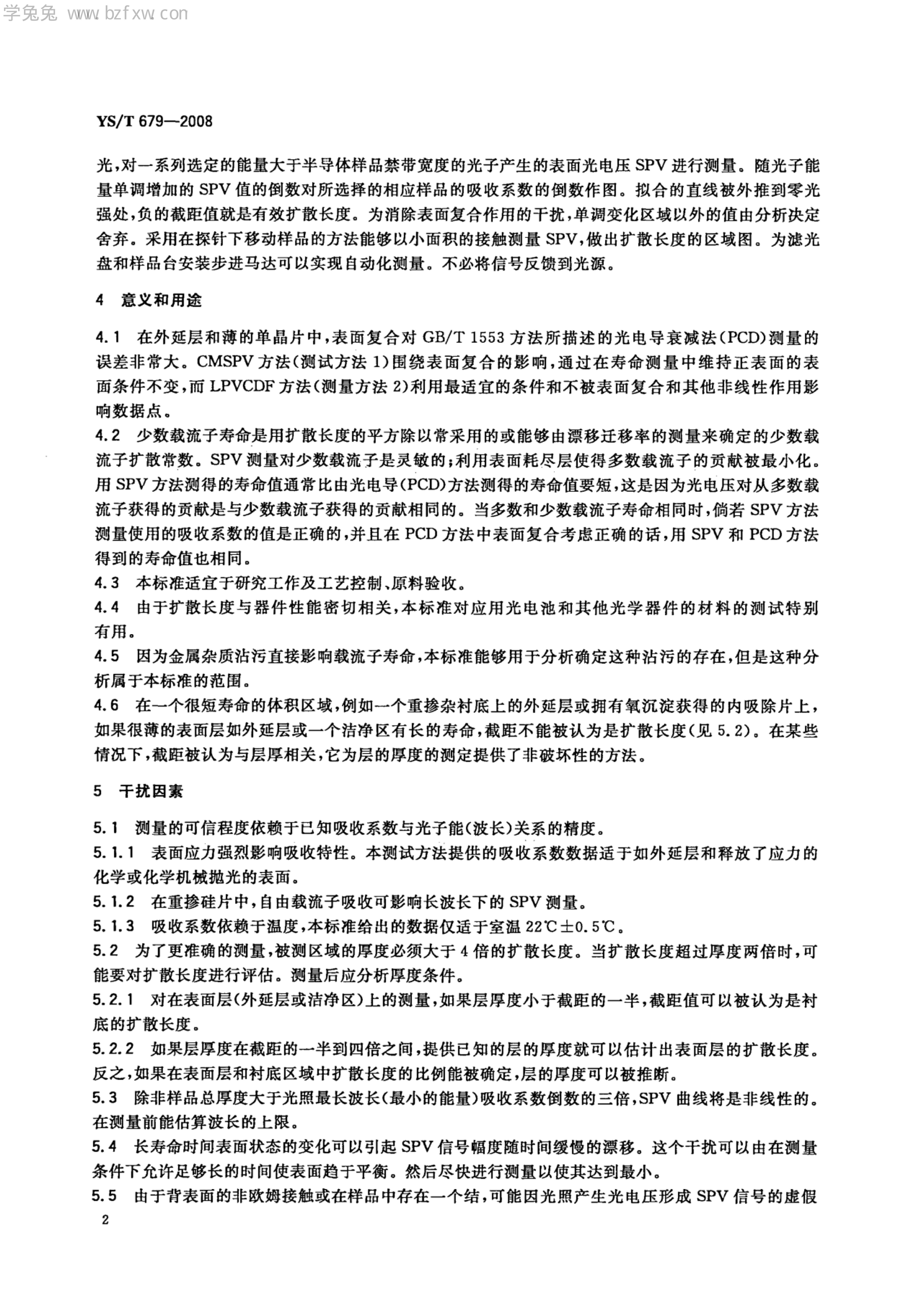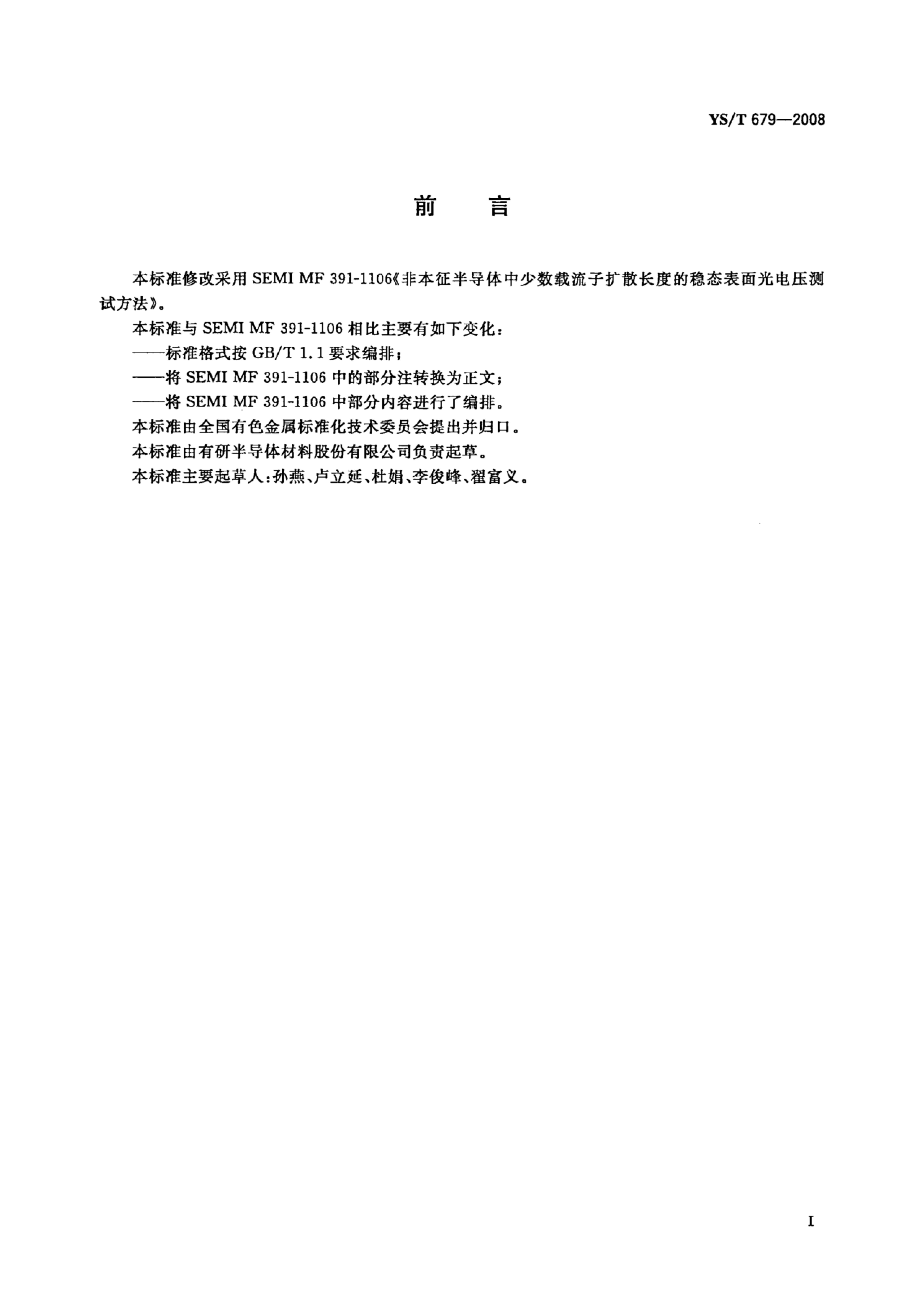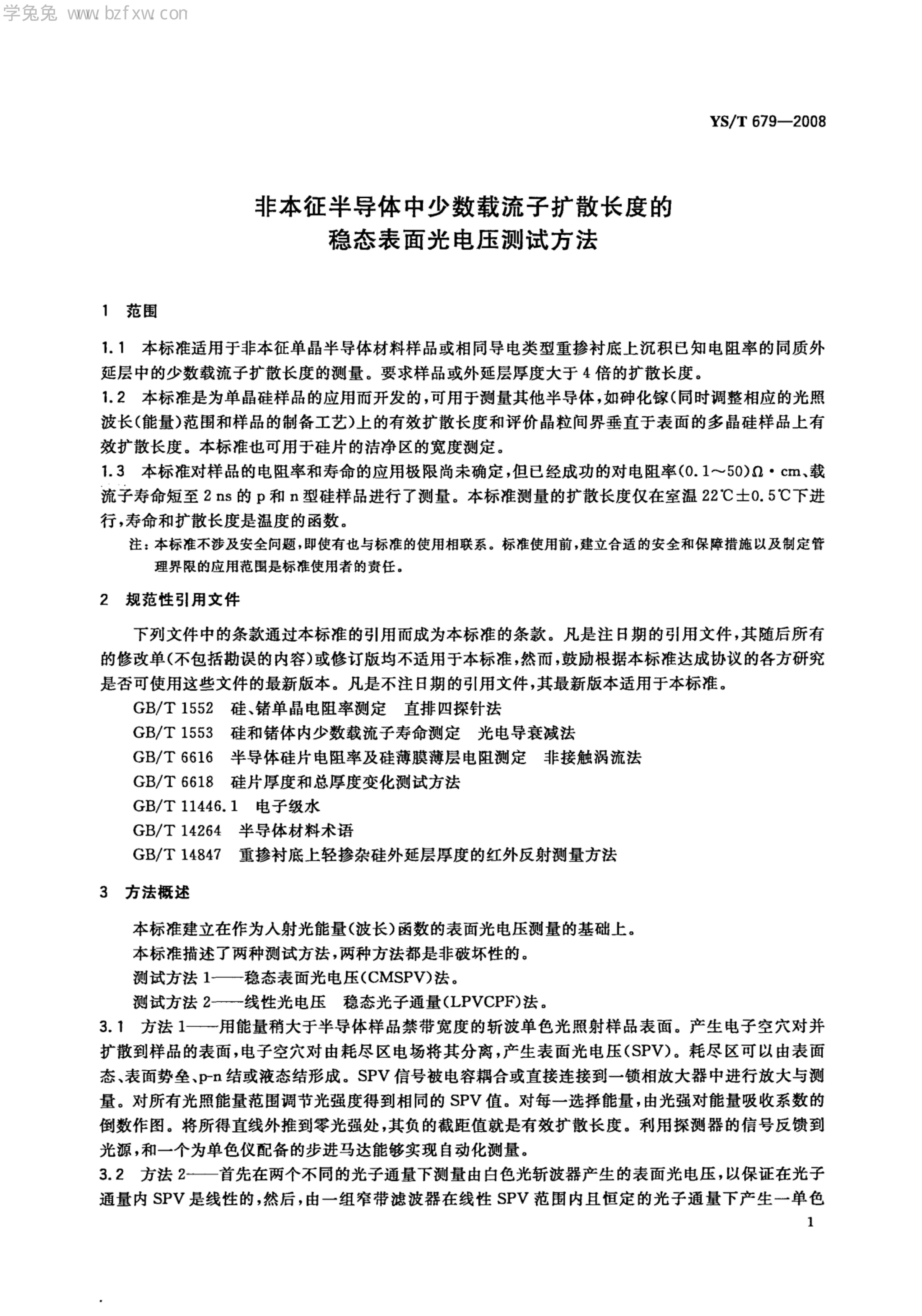 YS/T 679-2008 非本征半导体中少数载流子扩散长度的稳态表面光电压测试方法