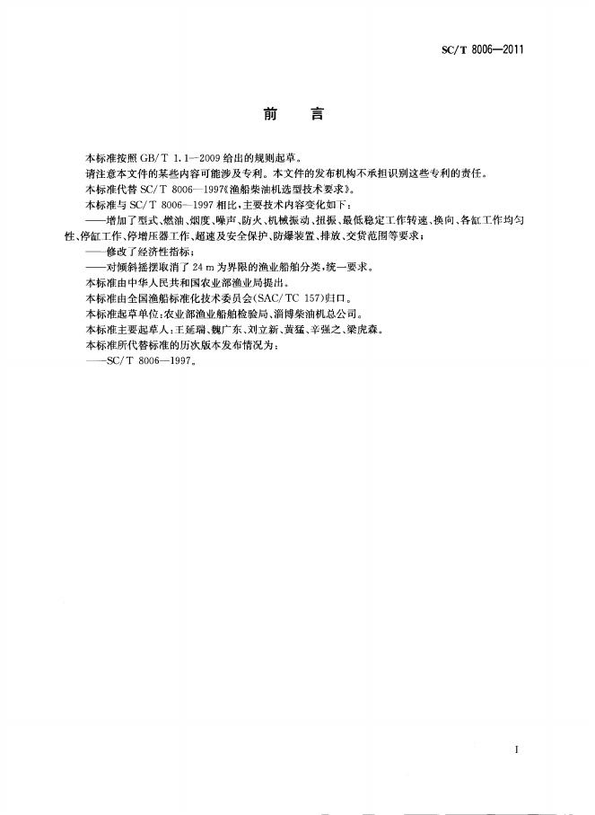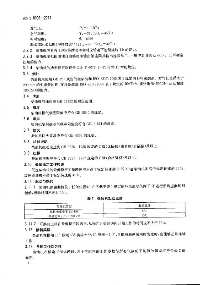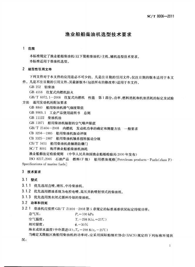 SC/T 8006-2011 渔业船舶柴油机选型技术要求
