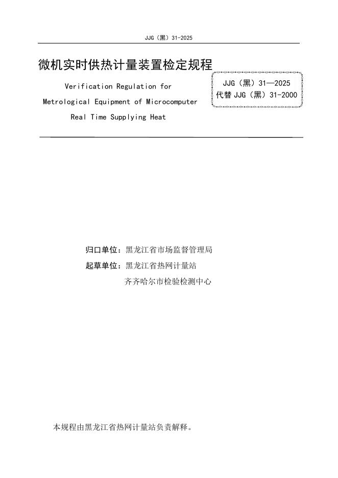 JJG(黑)31-2025 微机供热计量装置检定规程