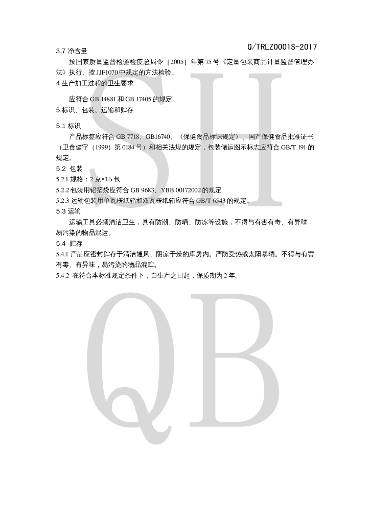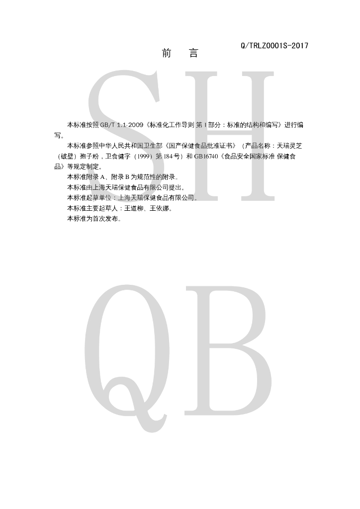 Q/TRLZ 0001S-2017 天瑞灵芝(破壁)孢子粉