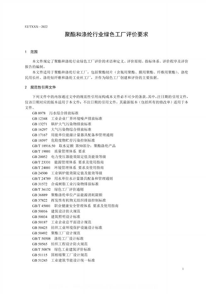 FZ/T 07032-2024 聚酯和涤纶行业绿色工厂评价要求