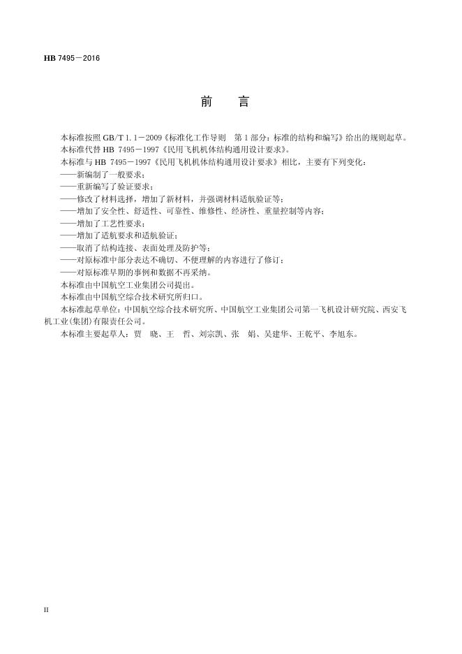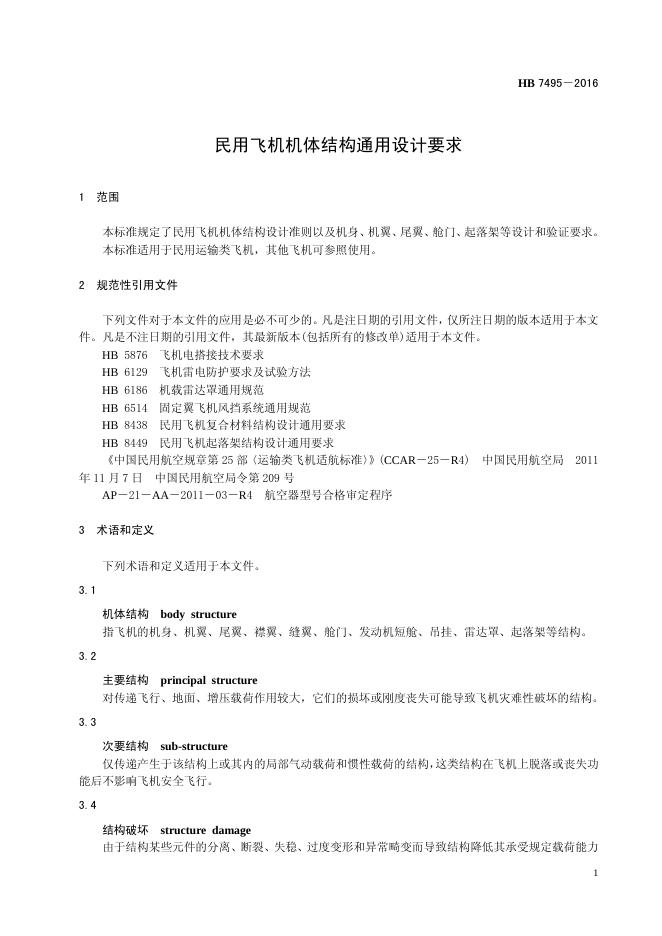 HB 7495-2016 民用飞机机体结构通用设计要求