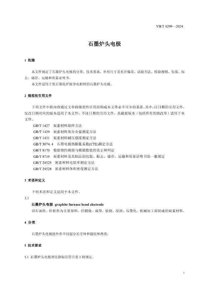 YB/T 4299-2024 石墨炉头电极