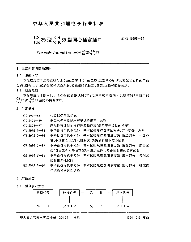 SJ/T 10495-1994 CS(CK)25型、CS(CK)35型同心插塞插口