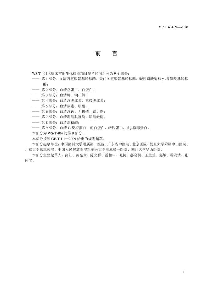 WST 404.9-2018 临床常用生化检验项目参考区间第9部分:血清C-反应蛋白、前白蛋白、转铁蛋白、β2-微球蛋白