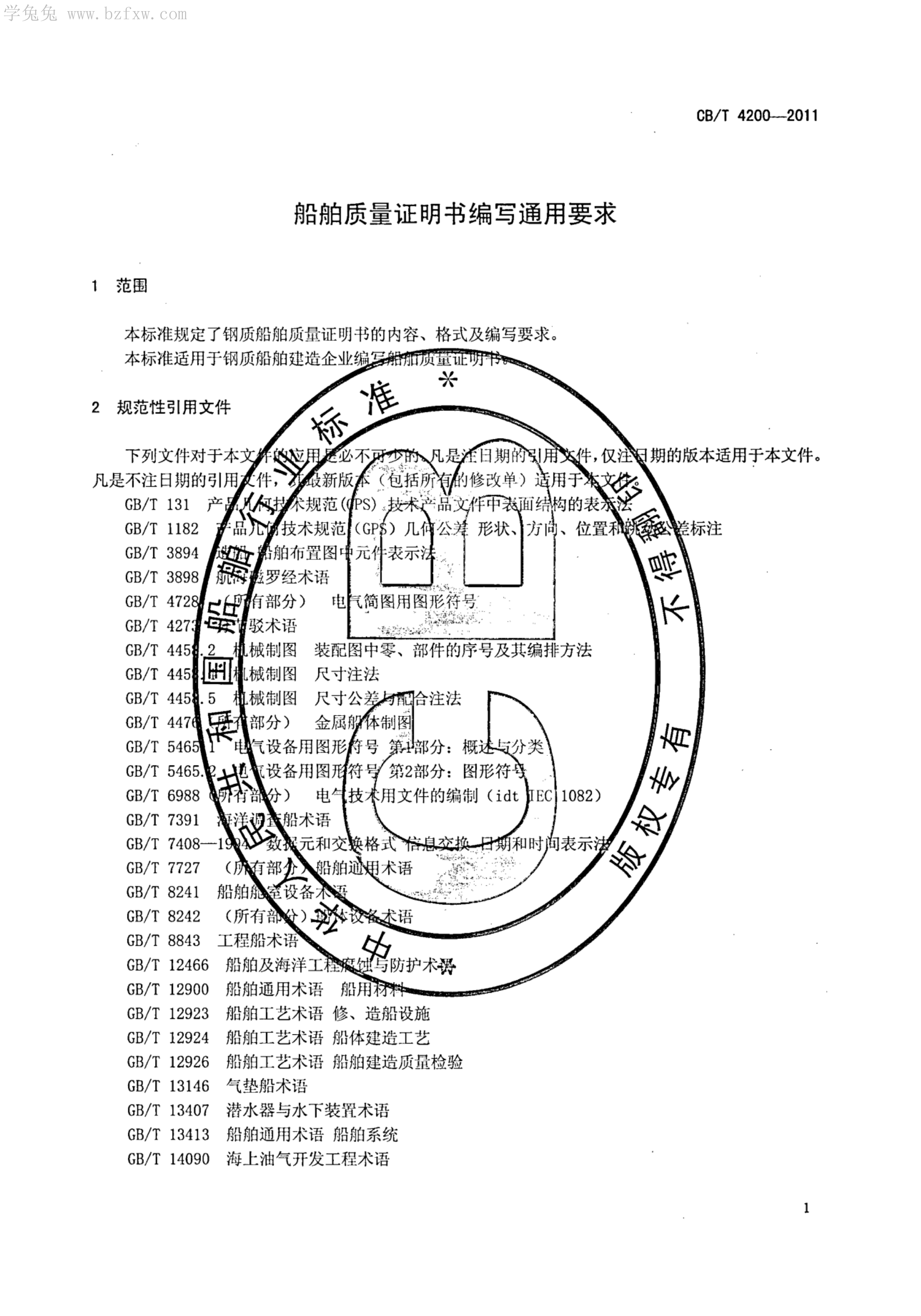 CB/T 4200-2011 船舶质量证明书编写通用要求