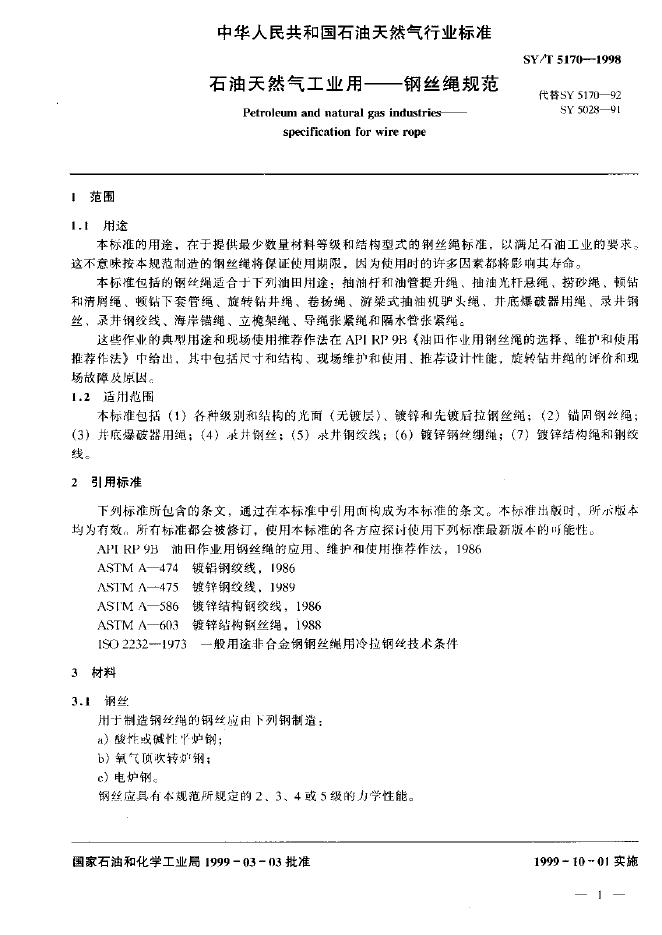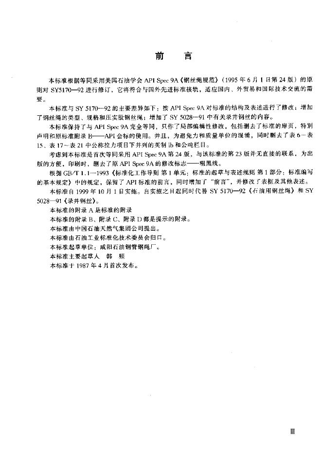 SY 5170-1992 石油用钢丝绳