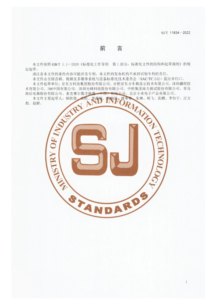 京东方科技集团股份有限公司、合肥京东方车载显示技术有限公司、深圳疆程技术有限公司、3M中国有限公司、深圳光峰科技股份有限公司、中检集团南方测试股份有限公司、青岛海信电器股份有限公司、麦克赛尔数字映像(中国)有限公司、北京小米电子产品有限公司