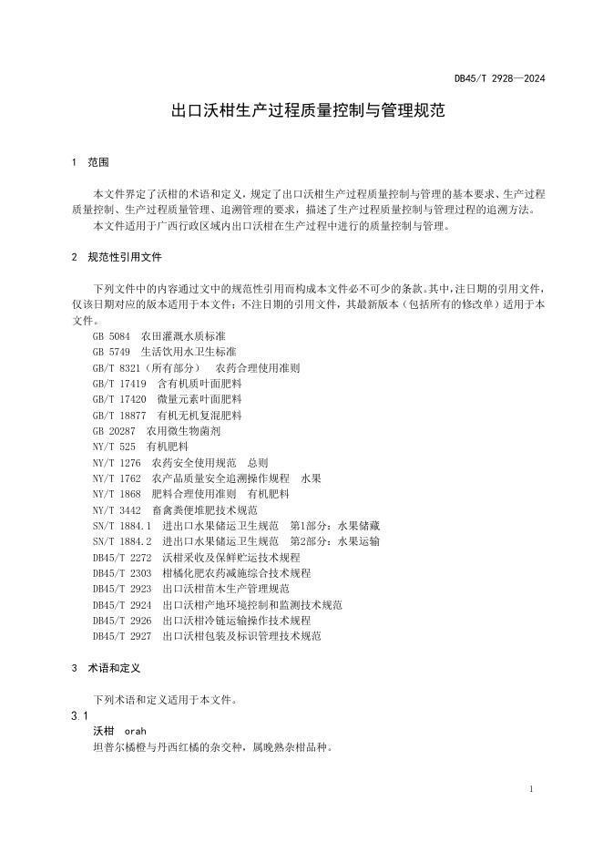 DB45/T 2928-2024 出口沃柑生产过程质量控制与管理规范