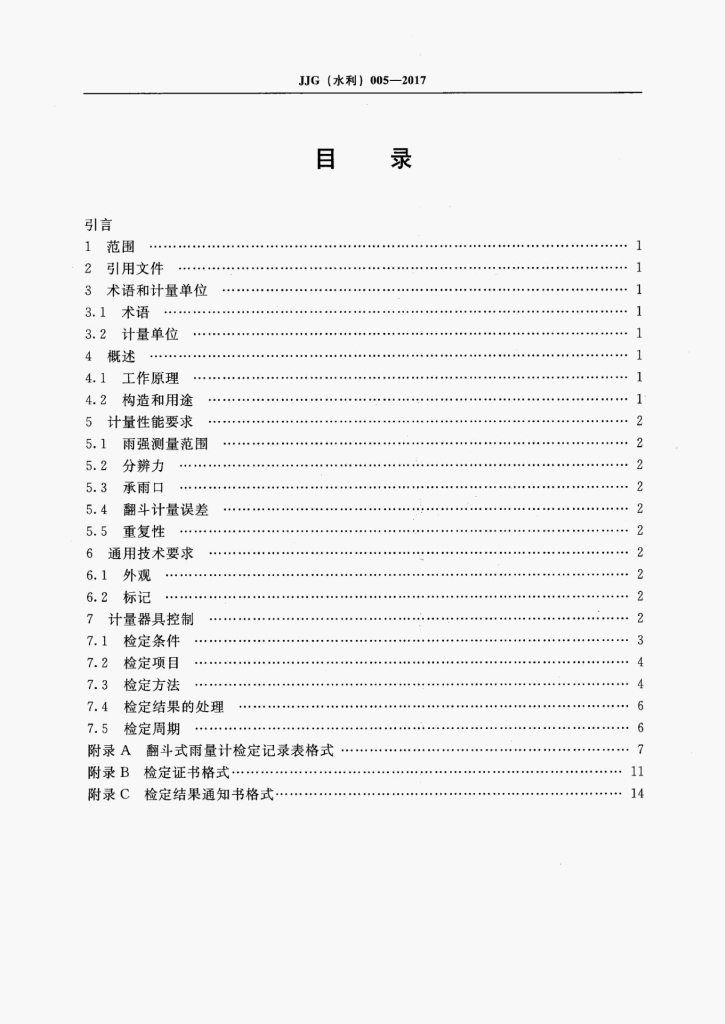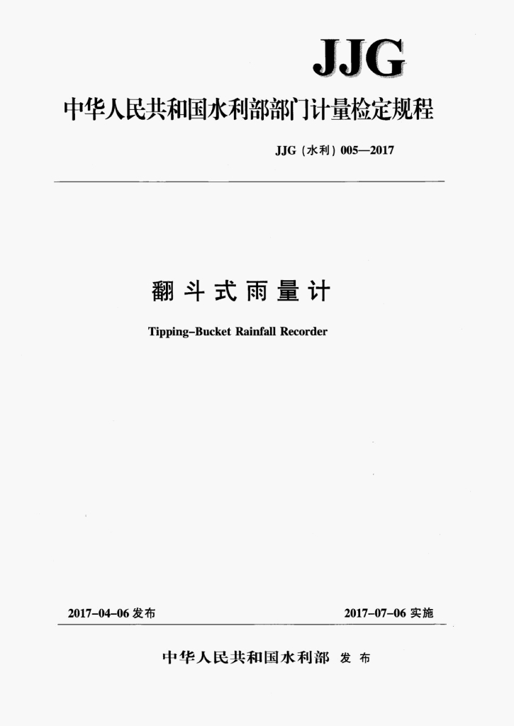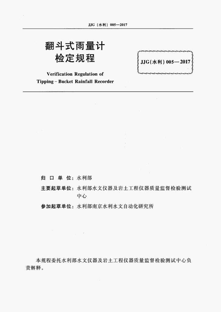 JJG(水利)005-2017 翻斗式雨量计检定规程