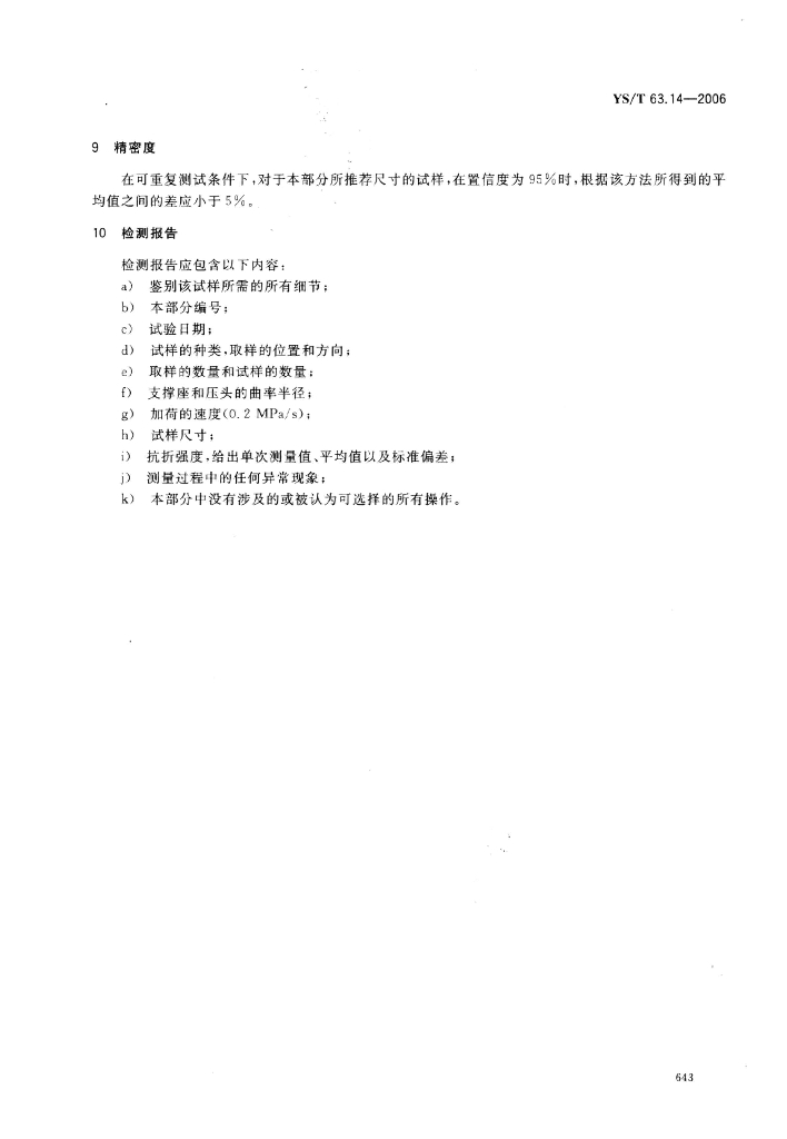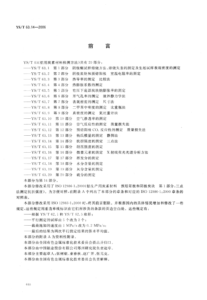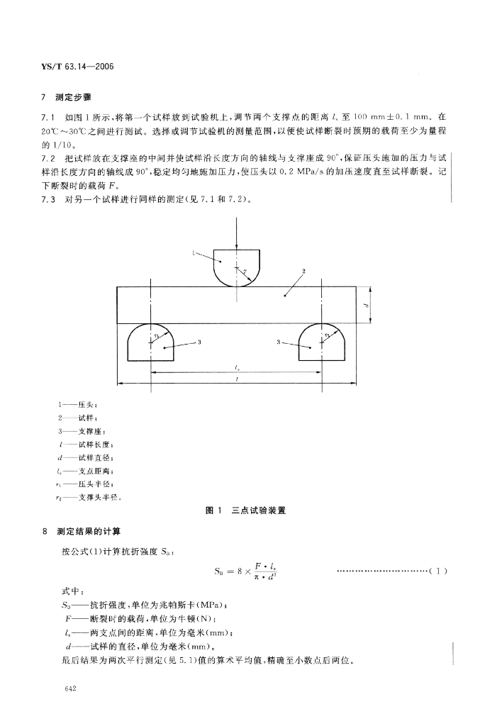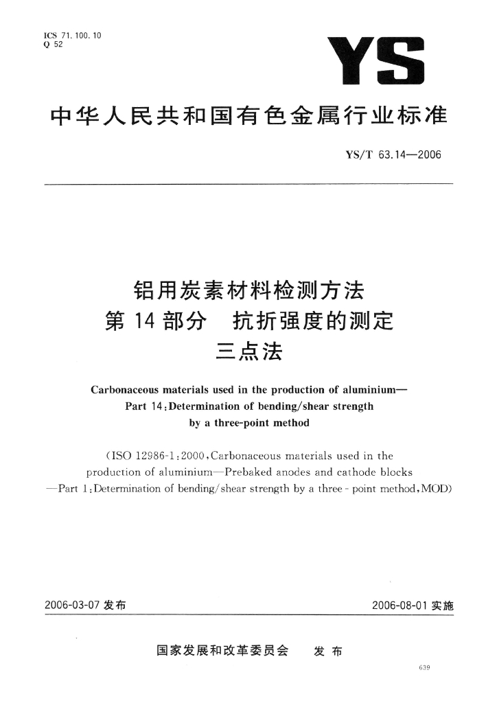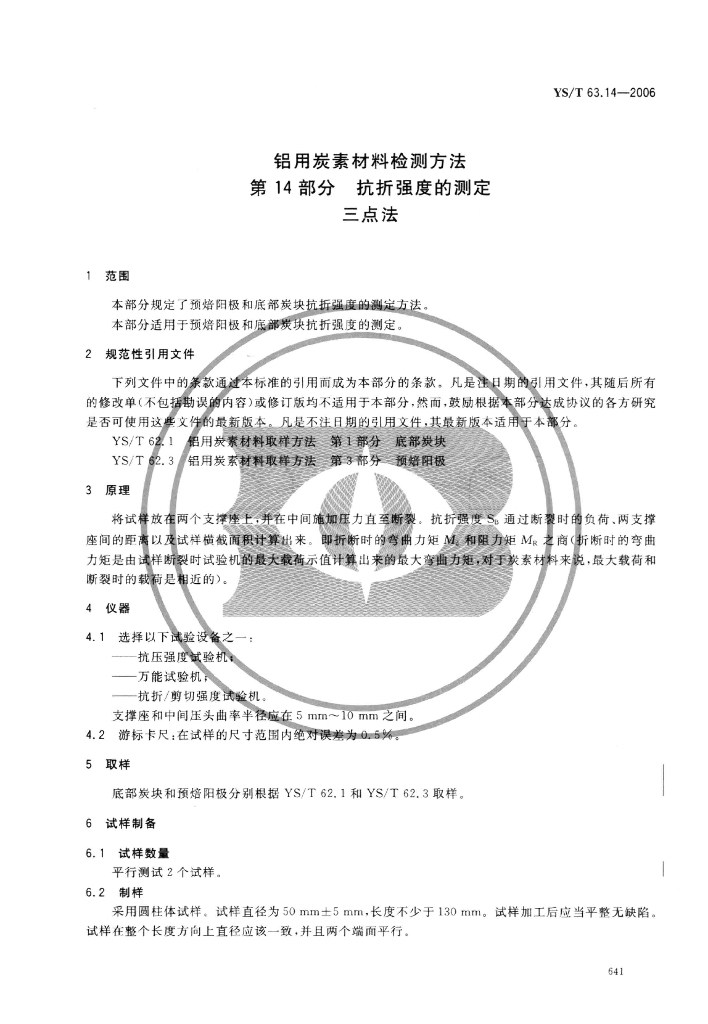 YS/T 63.14-2006 铝用碳素材料检测方法 第14部分:抗折强度的测定 三点法