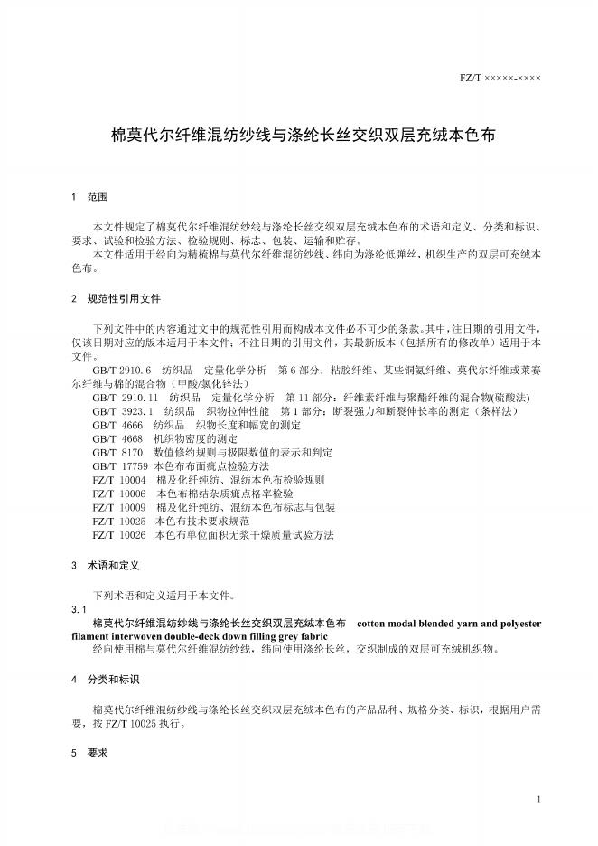 FZ/T 13060-2023 棉莫代尔纤维混纺纱线与涤纶长丝交织双层充绒本色布