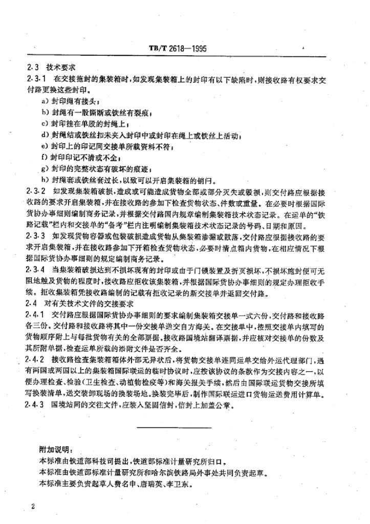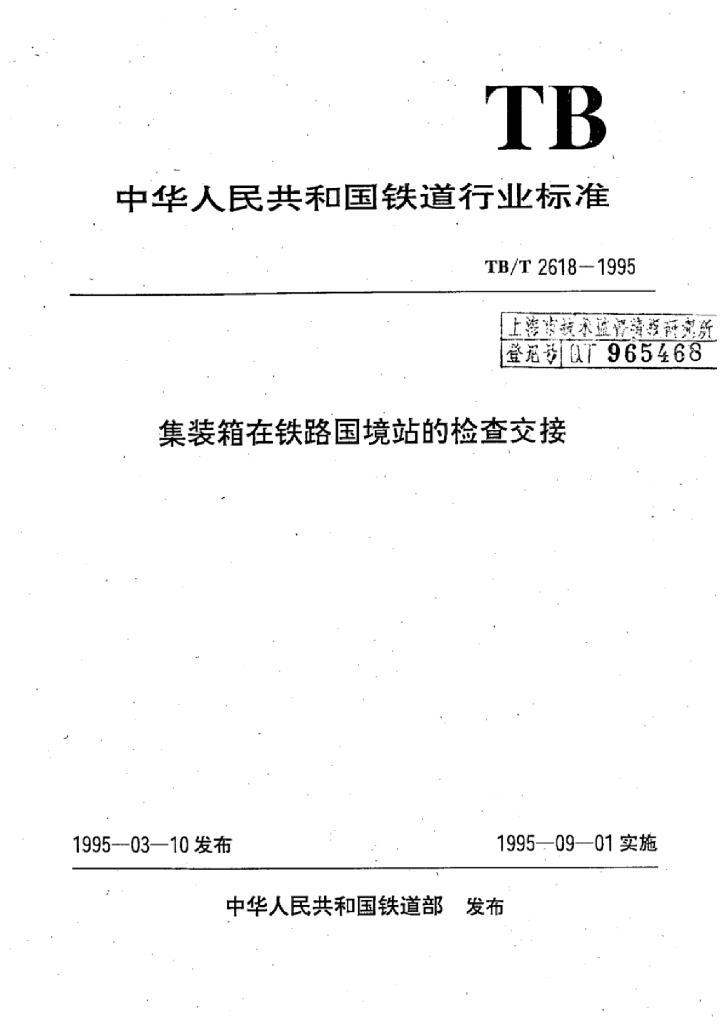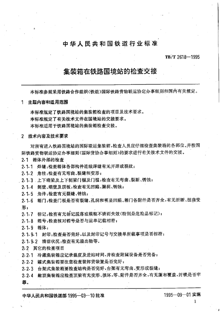 TB/T 2618-1995 集装箱在铁路国境站的检查交接