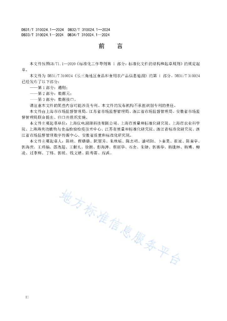 上海仪电溯源科技有限公司、上海市质量和标准化研究院、上海市农业科学院、上海海关动植物与食品检验检疫技术中心、江苏省质量和标准化研究院、浙江省标准化研究院、浙江省市场监督管理数字传媒中心、安徽省质量和标准化研究院