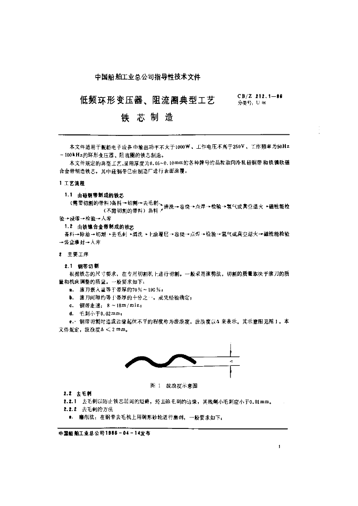 CB/Z 212.1-1986 低频环形变压器、阻流圈典型工艺铁芯制造