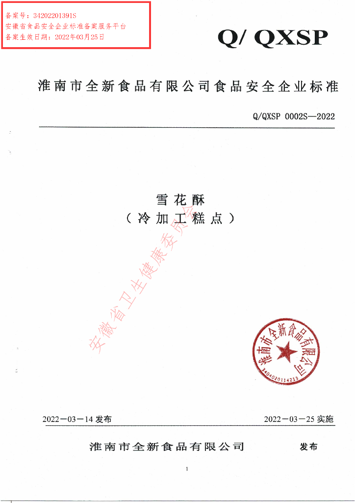 Q/QXSP 0002S-2022 雪花酥(冷加工糕点)