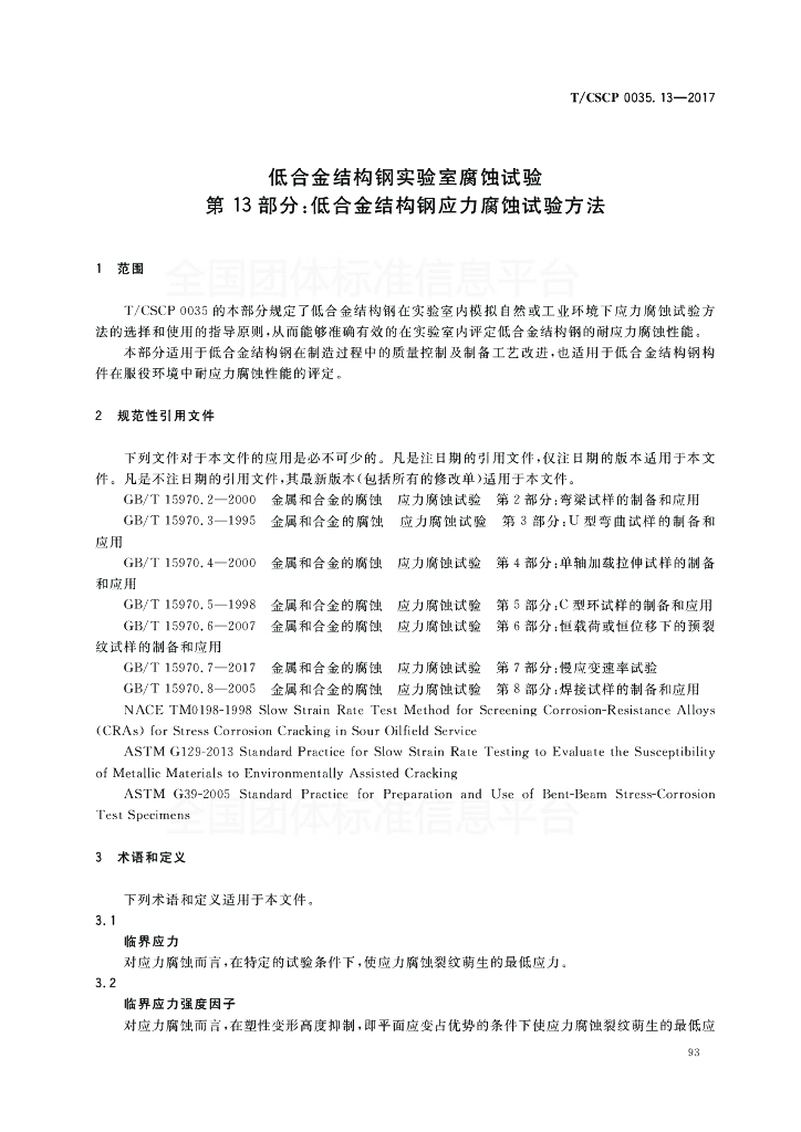 T/CSCP 0035.13-2017 低合金结构钢实验室腐蚀试验 第13部分:低合金结构钢应力腐蚀试验方法