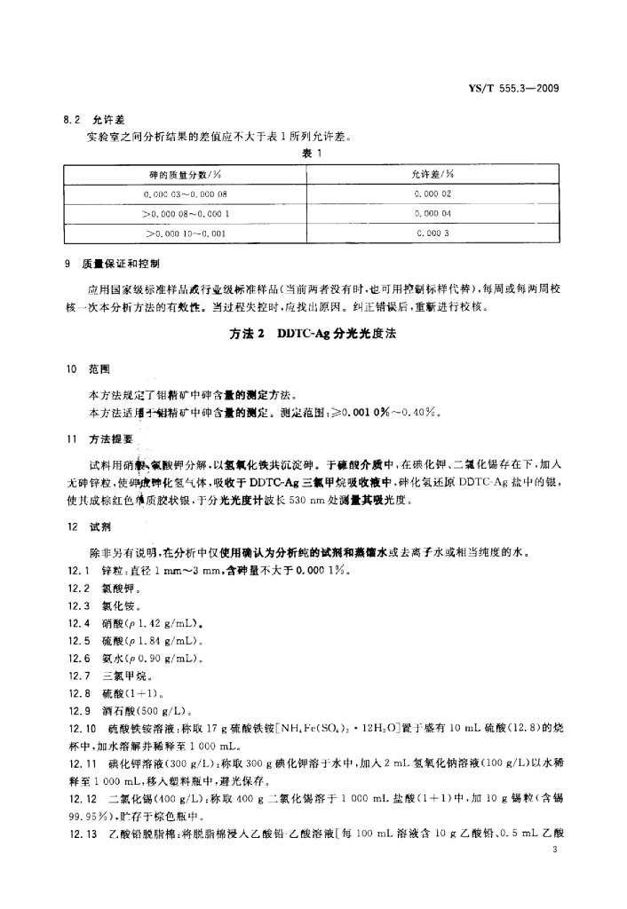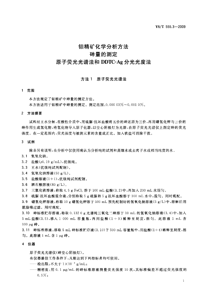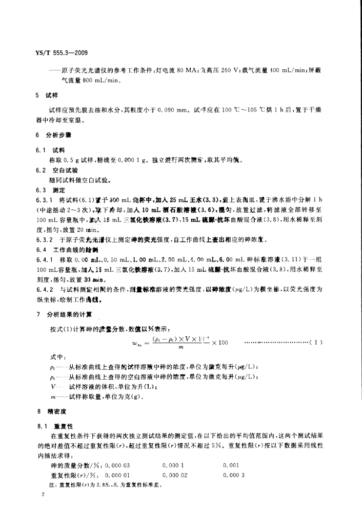 YS/T 555.3-2009 钼精矿化学分析方法砷量的测定原子荧光光谱法和DDTC-Ag分光光度法