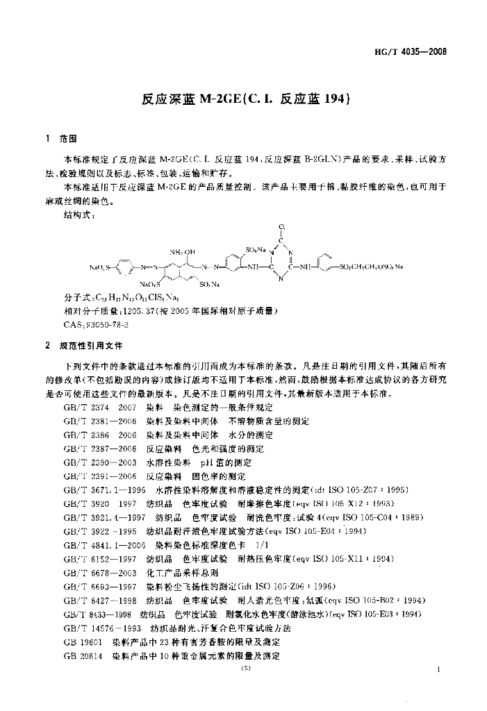 HG/T 4035-2008 反应深蓝 M-2GE(C.I. 反应蓝 194)