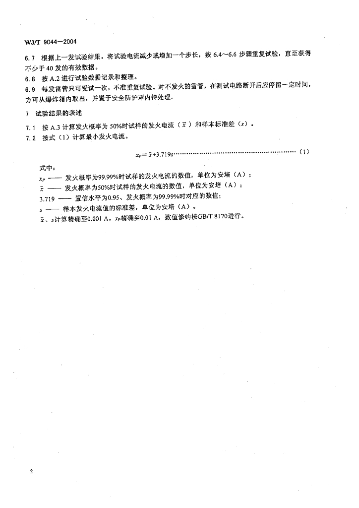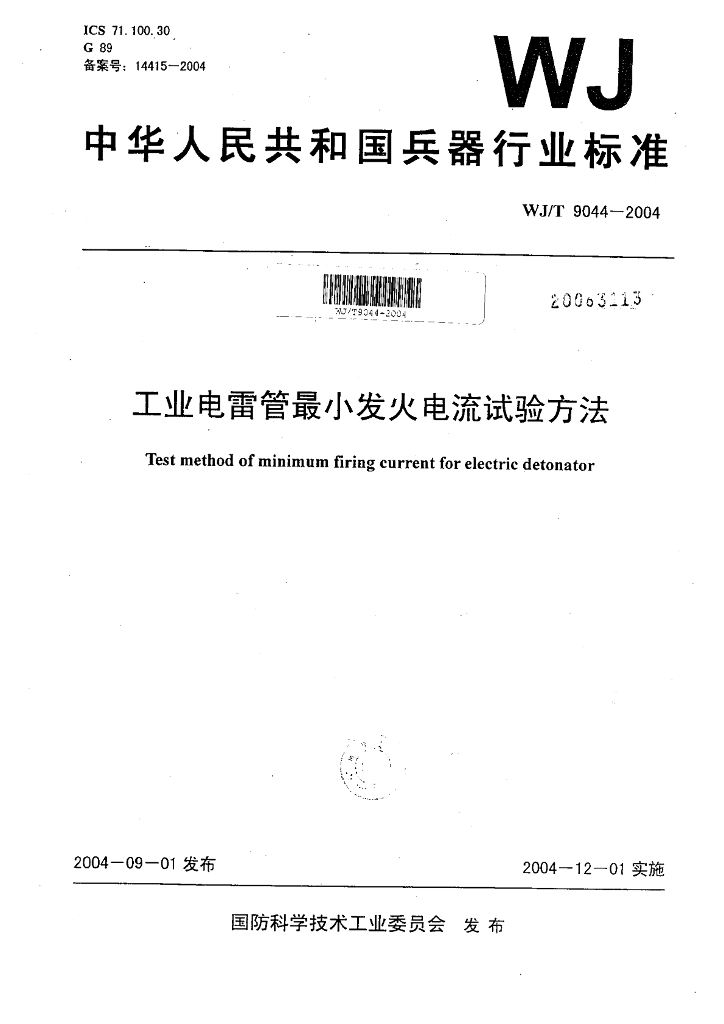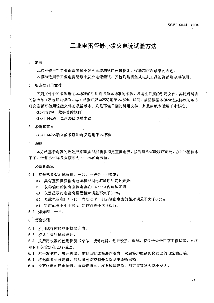 WJ/T 9044-2004 工业电雷管最小发火电流试验方法