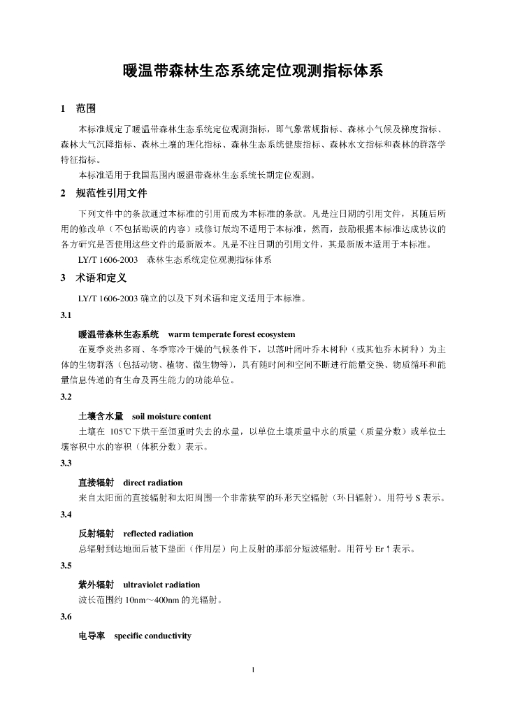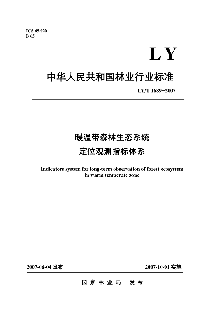 LY/T 1689-2007 暖温带森林生态系统定位观测指标体系