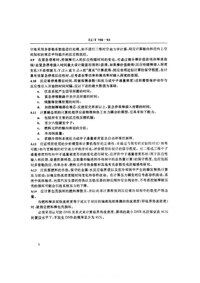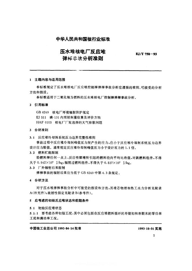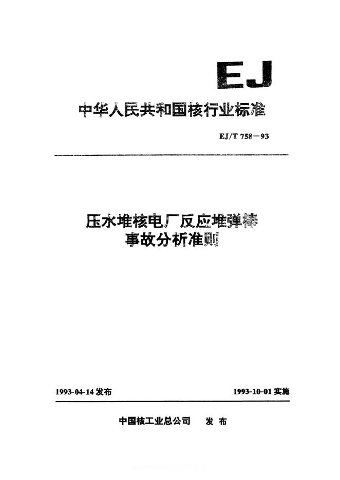 EJ/T 758-1993 压水堆核电厂反应堆弹棒事故分析准则