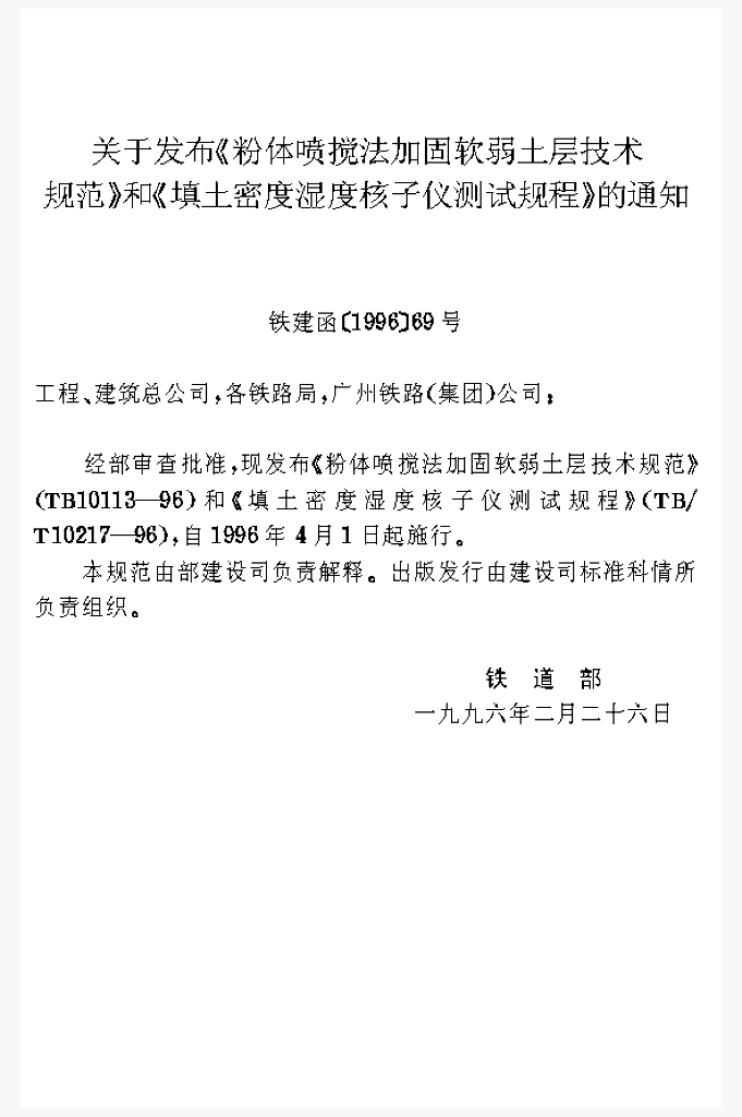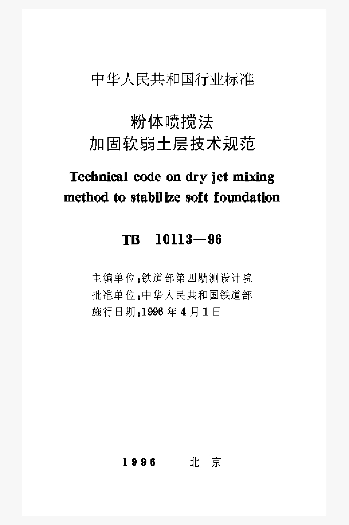 TB 10113-1996 粉体喷搅法加固软弱土层技术规范