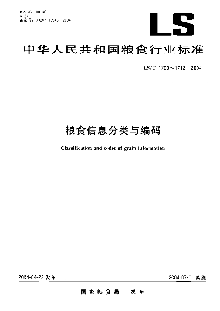 LS/T 1701-2004 粮食信息分类与编码 粮食企业分类与代码