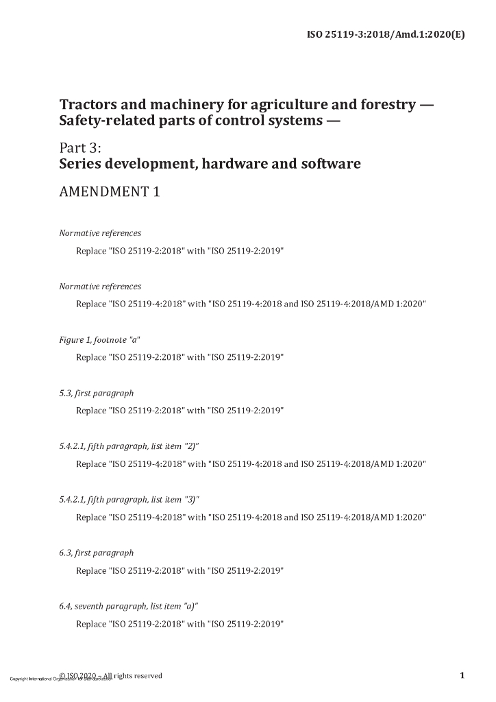 ISO 25119-3-2018/AMD 1-2020 农林用拖拉机和机械 控制系统与安全相关的零件 第3部分:硬件和软件系列研制 修订1